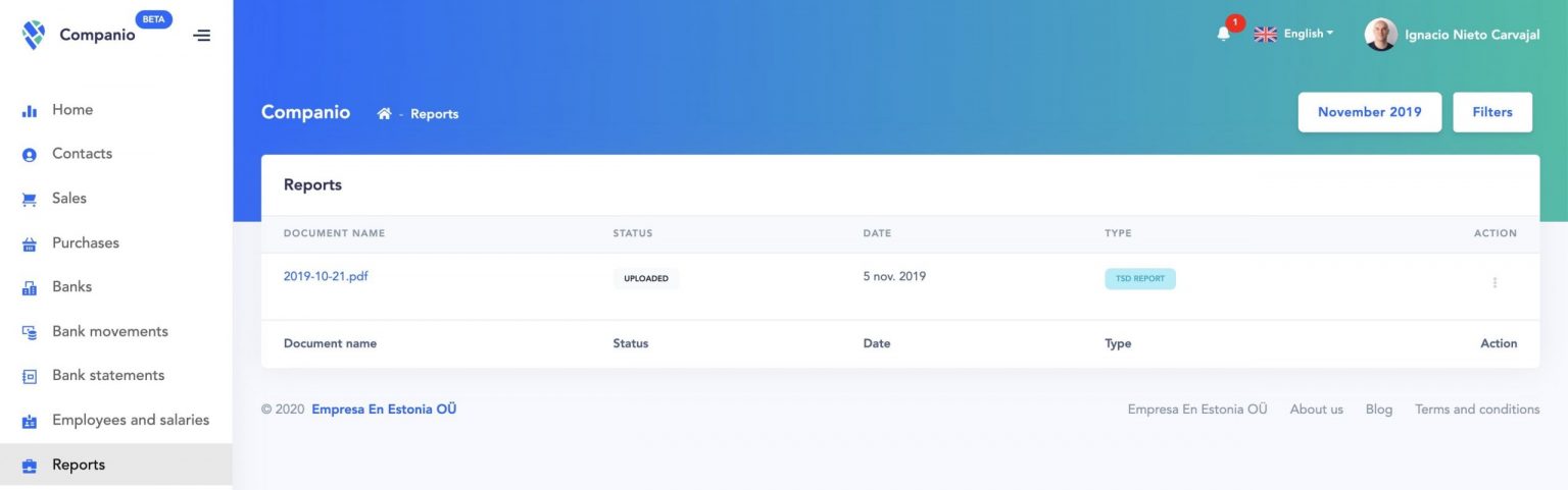 Therefore, in Companio you will be able to access two types of accounting reports each month: