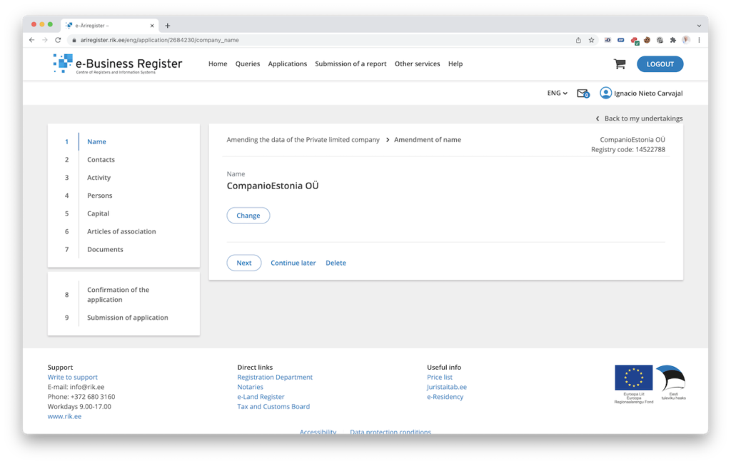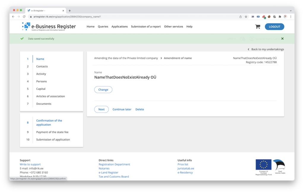 In this article, we explain how to change the name of your company in the Estonian online registry.