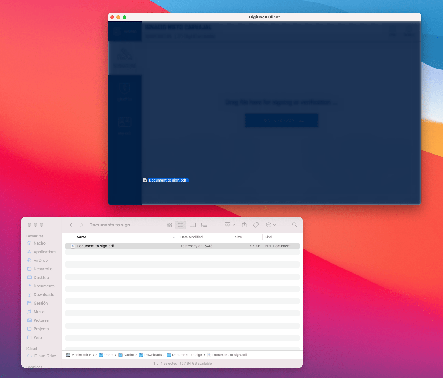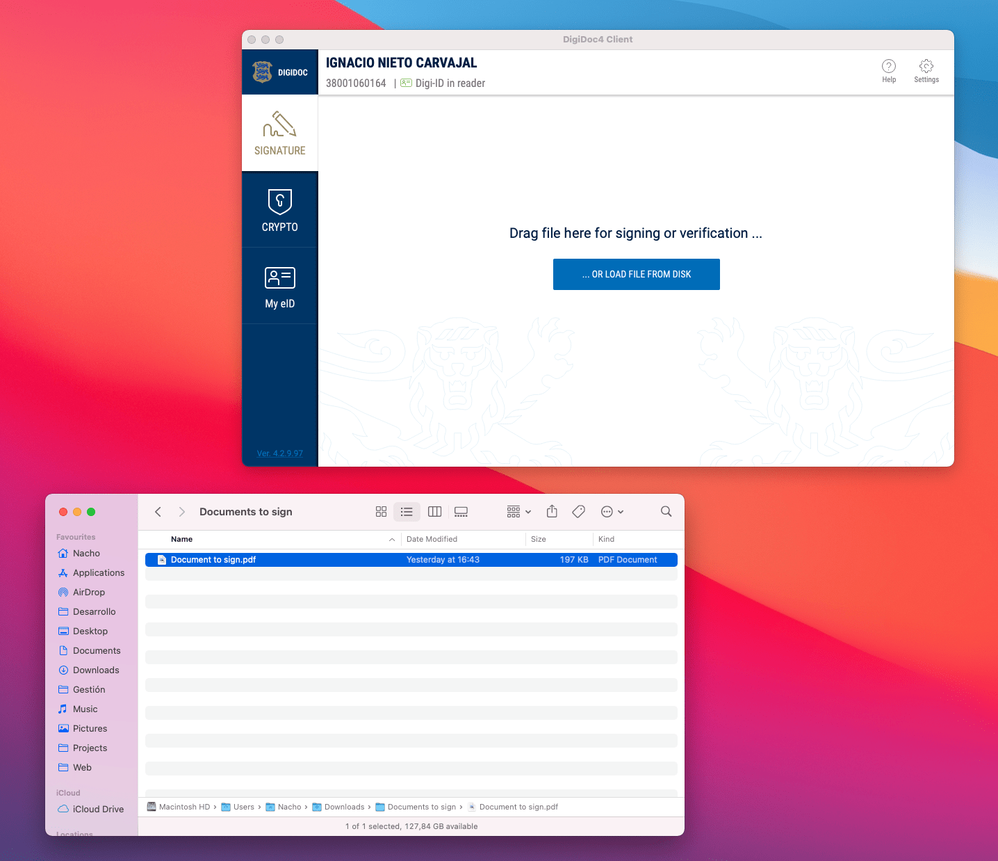 Next, drag and drop the document into DigiDoc or click on “… Or load file from disk” and navigate until you find and select the document that you want to sign.