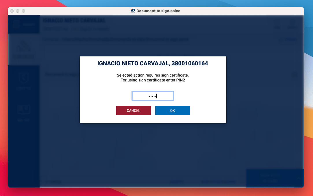 DigiDoc will ask for your PIN2 to complete the signature.